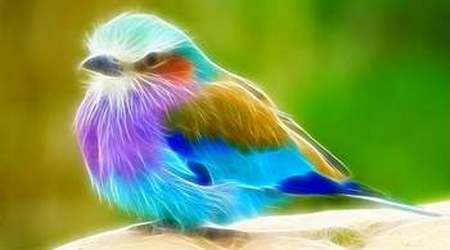 (cabeza, cuello y dorso), azul (alas y cola) y violeta (pecho).